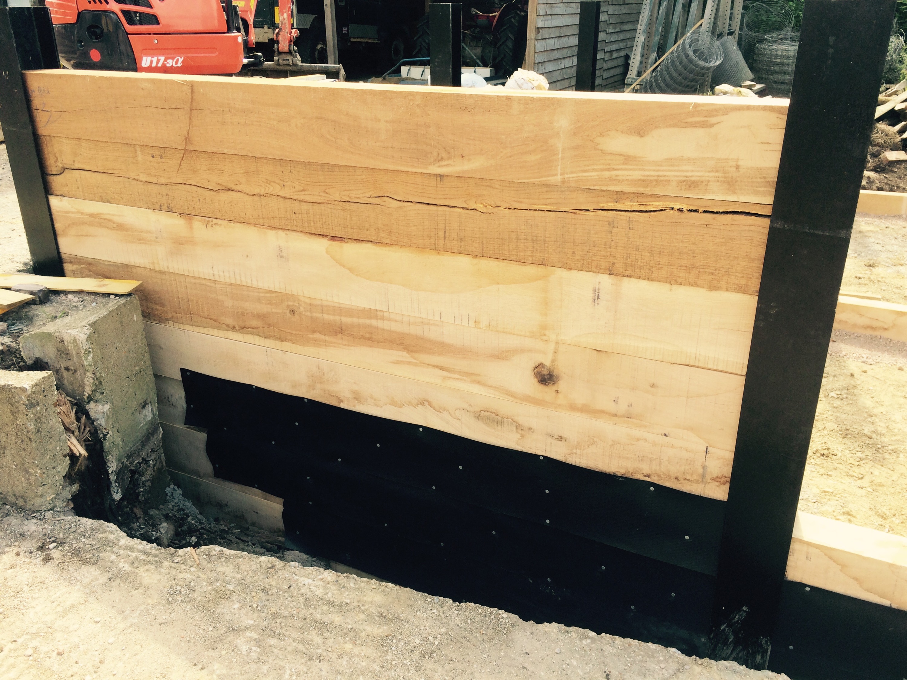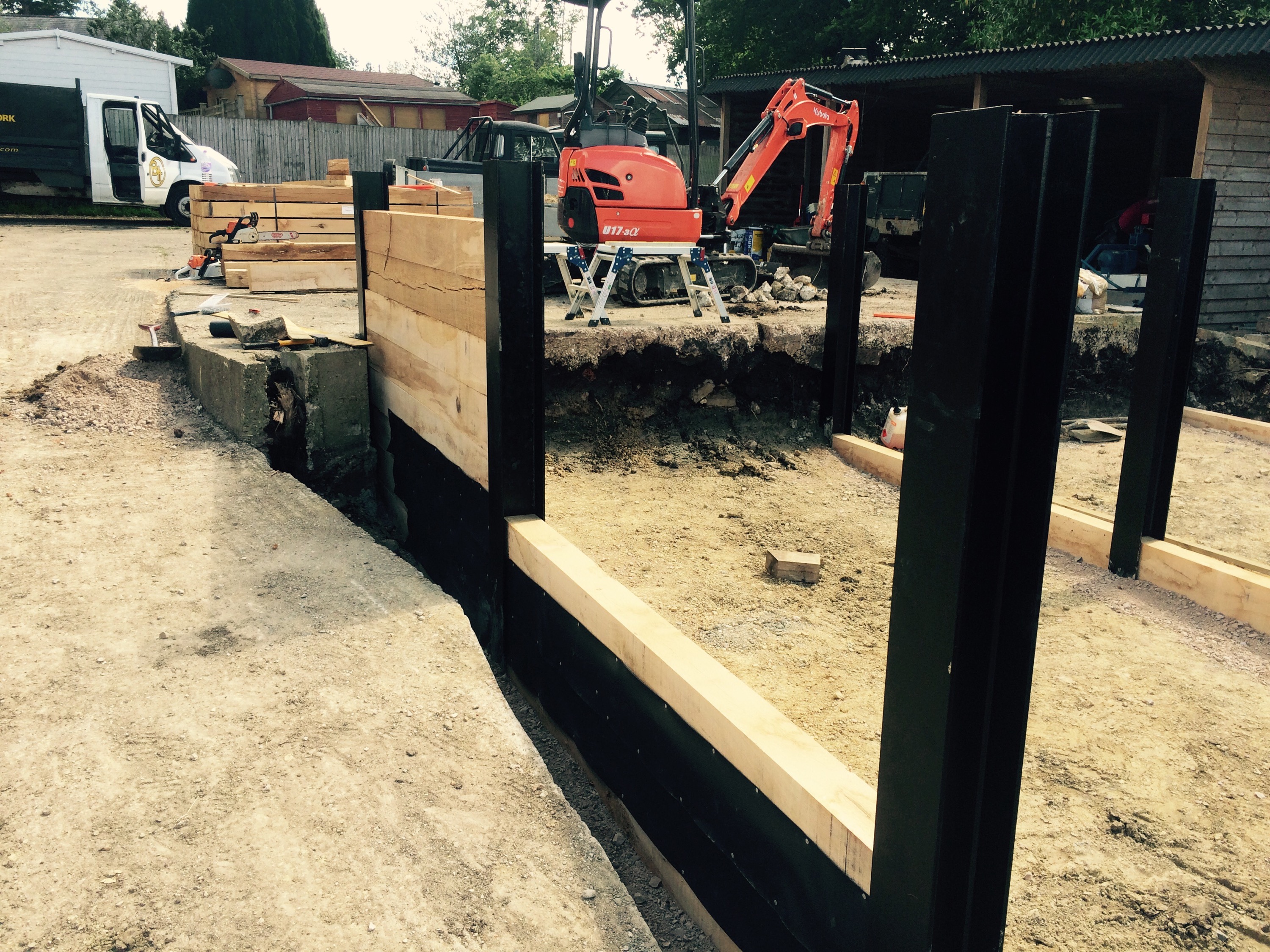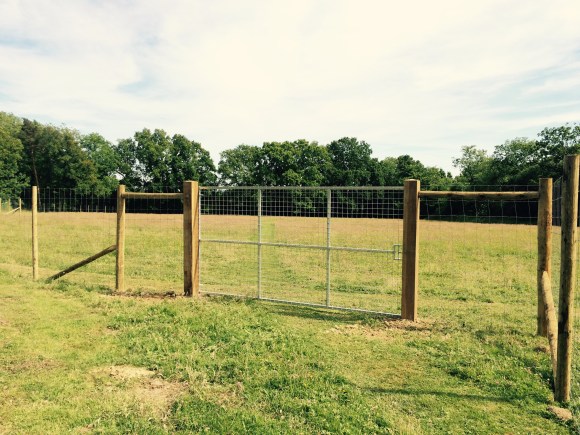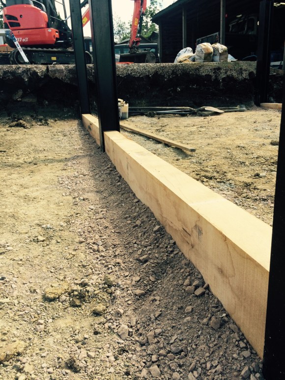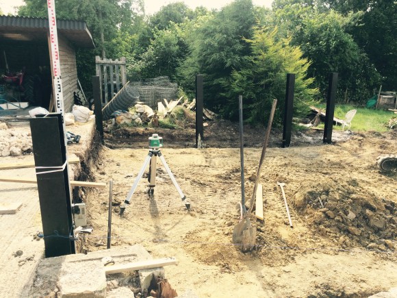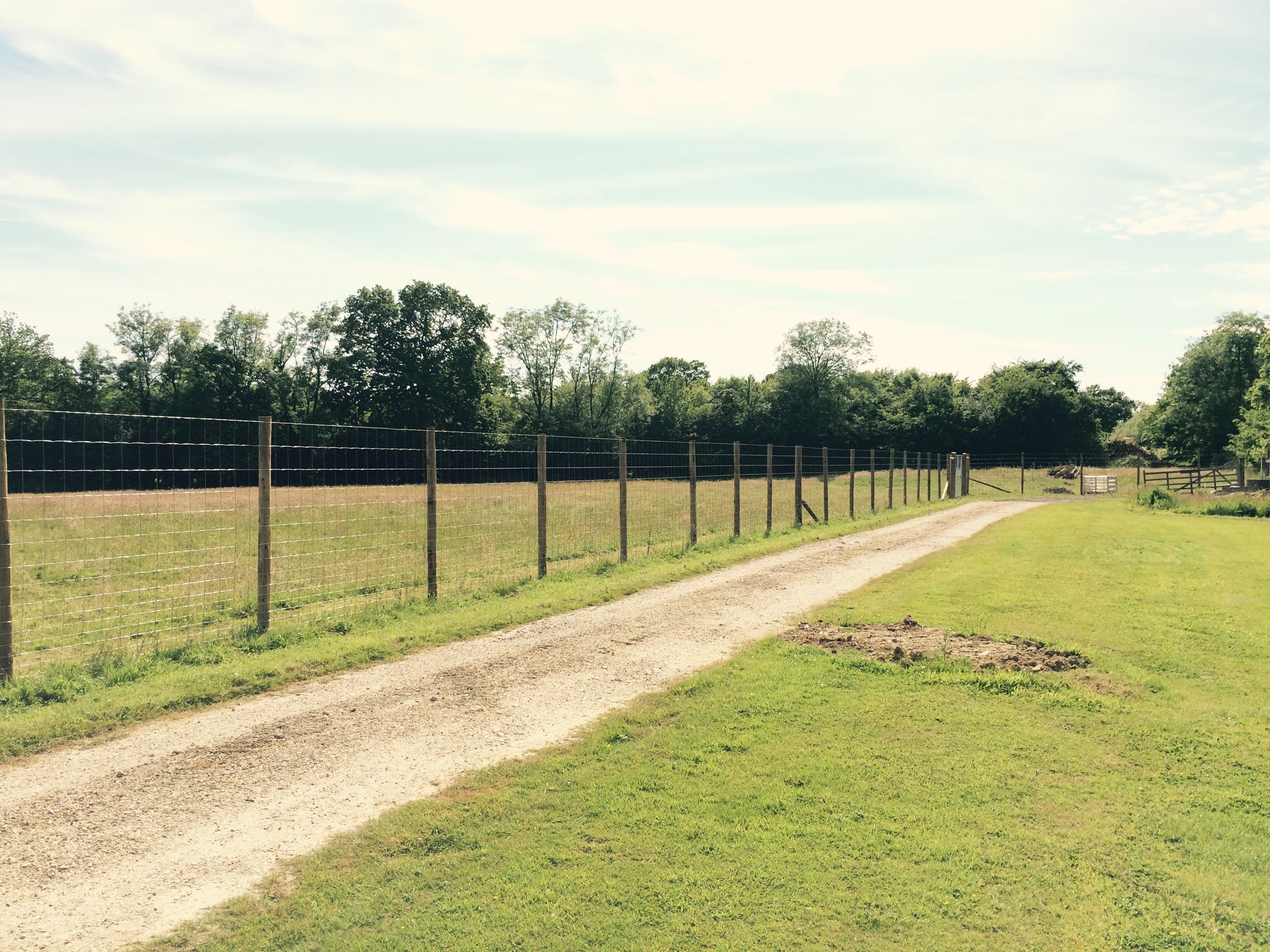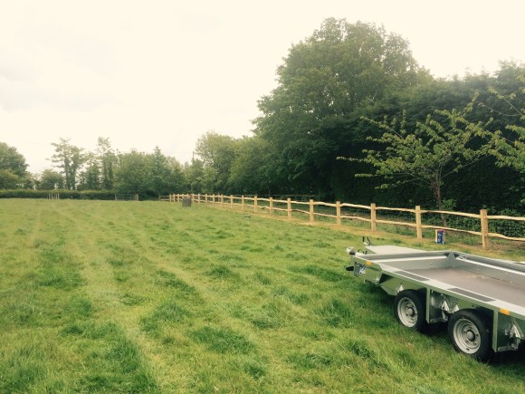On this project the ground had to be dug out so that the gate could be hung level and flush with the ground so it’s secure for dogs. Galvanised gates hung on 3m oak posts